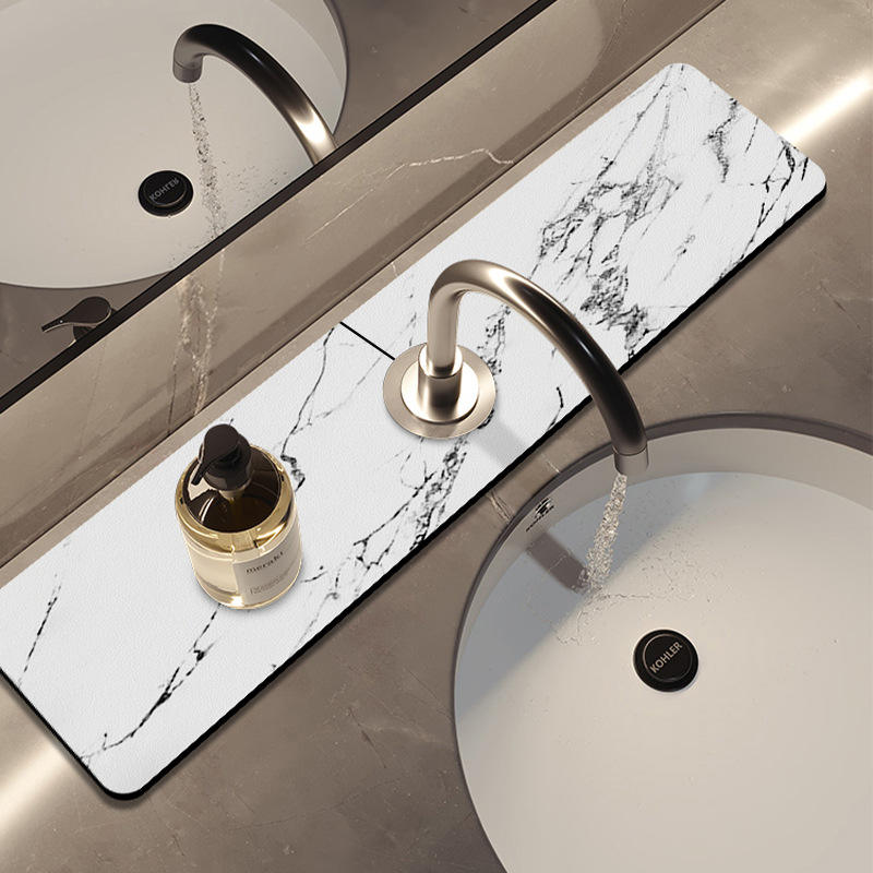Tapis de protection élégant en marbre blanc pour robinet, rectangulaire, antidérapant, pour évier de cuisine