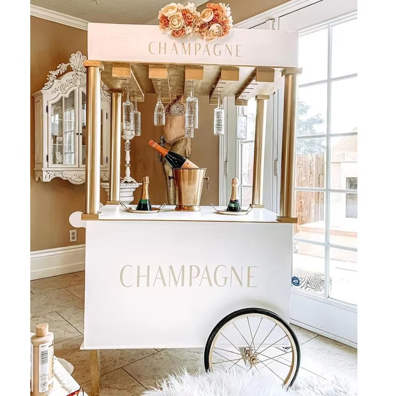 Chariot de présentation de bonbons élégant en PVC blanc, grande capacité, à roulettes, multifonctionnel pour desserts de mariage professionnels