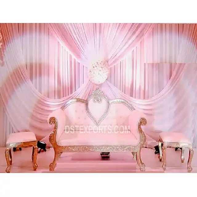 Ensemble de canapés blancs élégants pour réception de mariage, dernier modèle de canapé de mariage en forme de cœur blanc et or, canapé design en forme de cœur, fiji