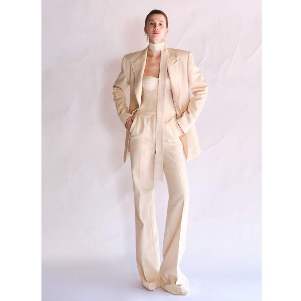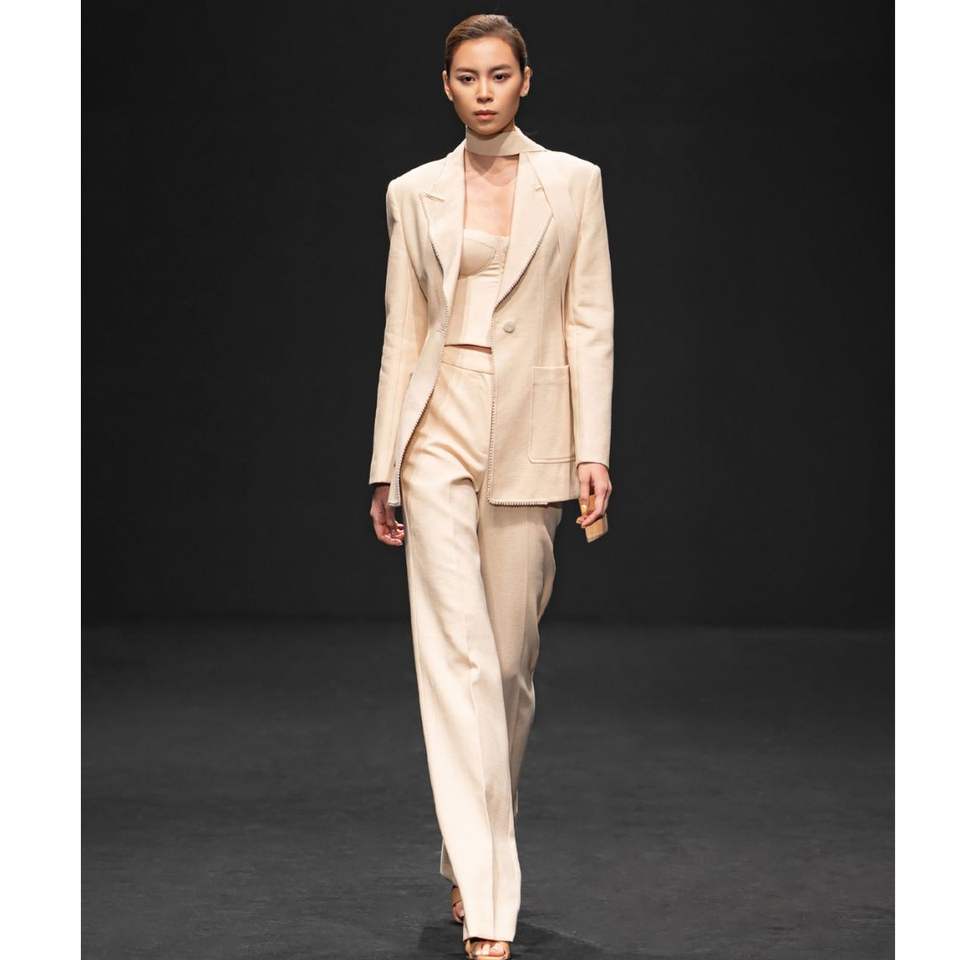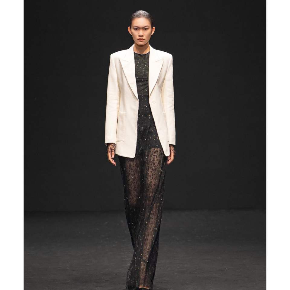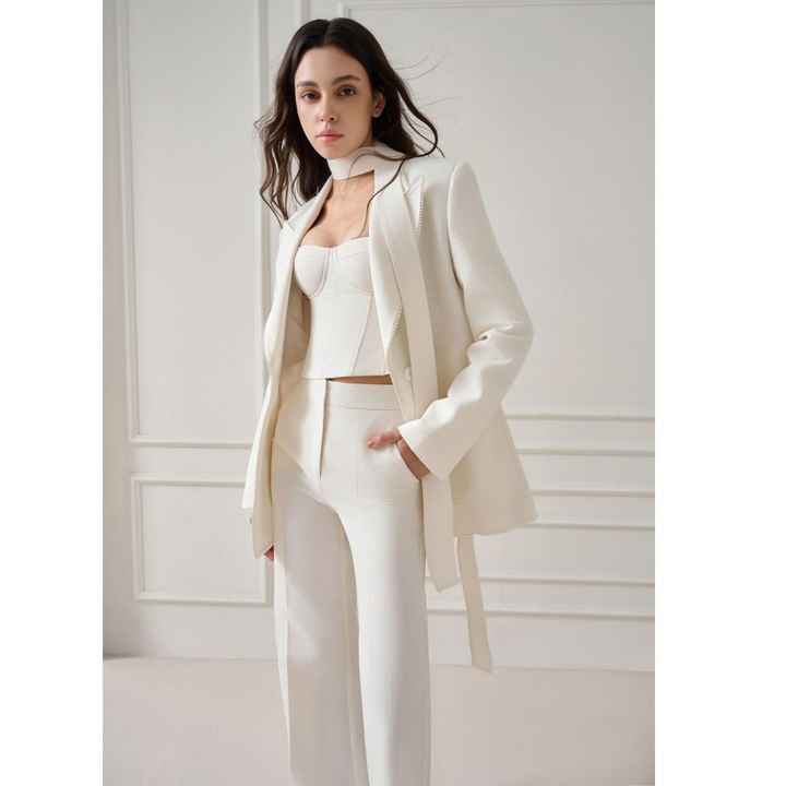Elegant Whiteant Women's Blazer High-Quality Sand Jacquard Single-Breasted Long-Sleeve Contemporary Straight Cut From VN