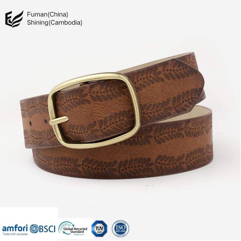 Elegant Women's Belts Featuring Gold Square Buckle and Unique Printed Designs Made in Cambodia