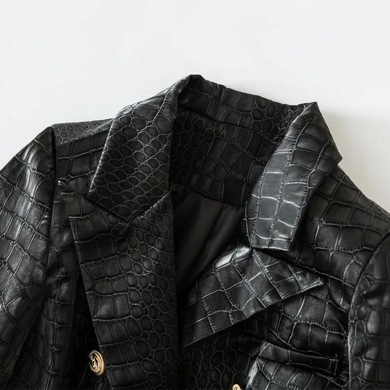 Black Fashion Crocodile Jacket For Women Double Breasted Womens Crocodile Leather Coat Gold Buttons Slim Fit Blazer Coat