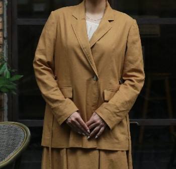 Elegant Women's Raw Woven Ramie Jacket with Cotton Lining Eco-Friendly Tie Detail Button Closure Timeless Double-breasted Design