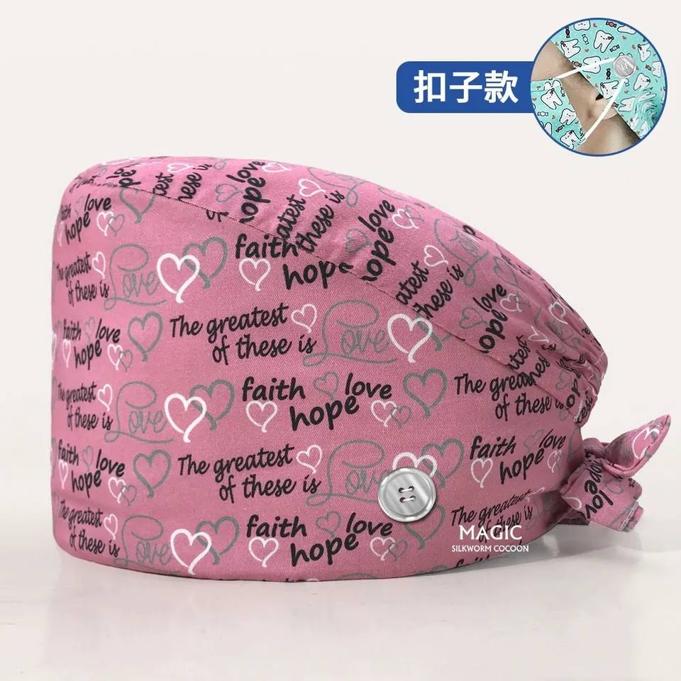Elegant Women's Scrub Cap Hair Hat Cotton Working Hat Button Butterfly Pattern Ear Random Color