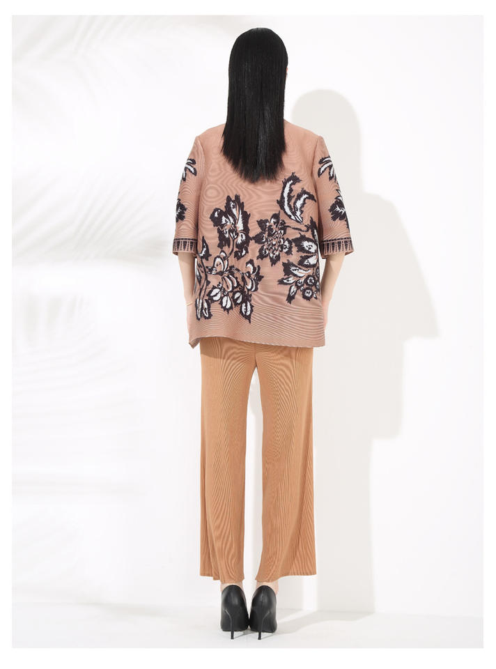Ensemble élégant pour femmes avec col montant imprimé haut à manches trois-quarts décontracté Loug Wear