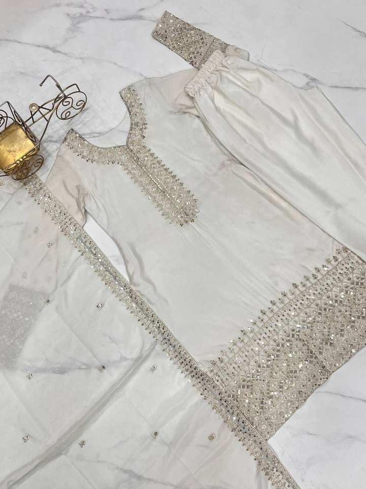 Elegant Women's Three-Piece Suit Embroidered Long Kurta with Palazzo Pants and Dupatta Ideal for Festivals, Office & Daily Wear