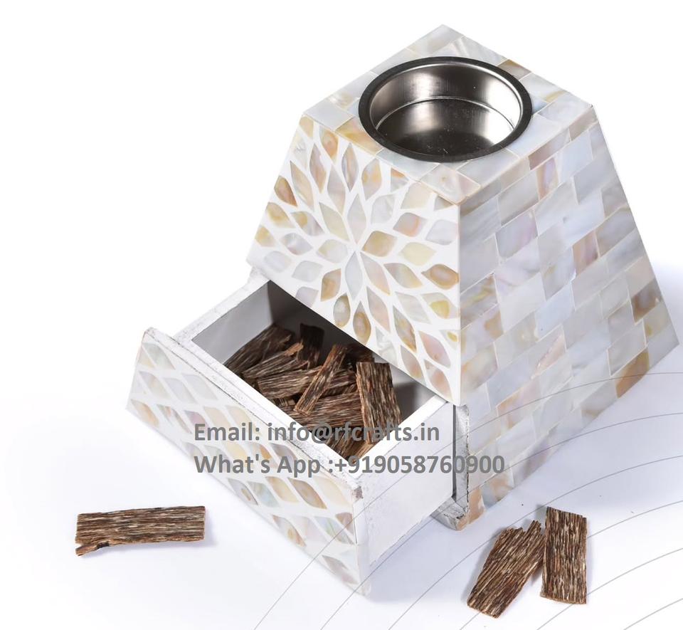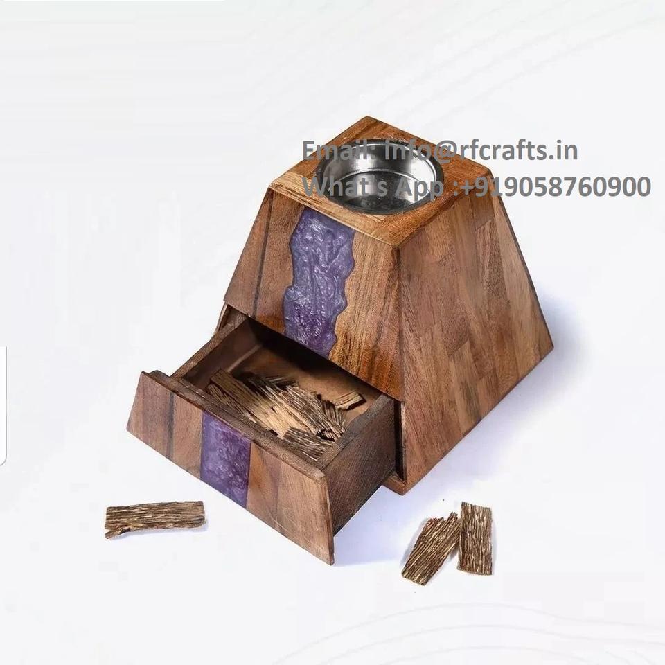 Elegant Wooden Resin Incense Burner Medkhan Mubkhar for Spiritual Ceremonies
