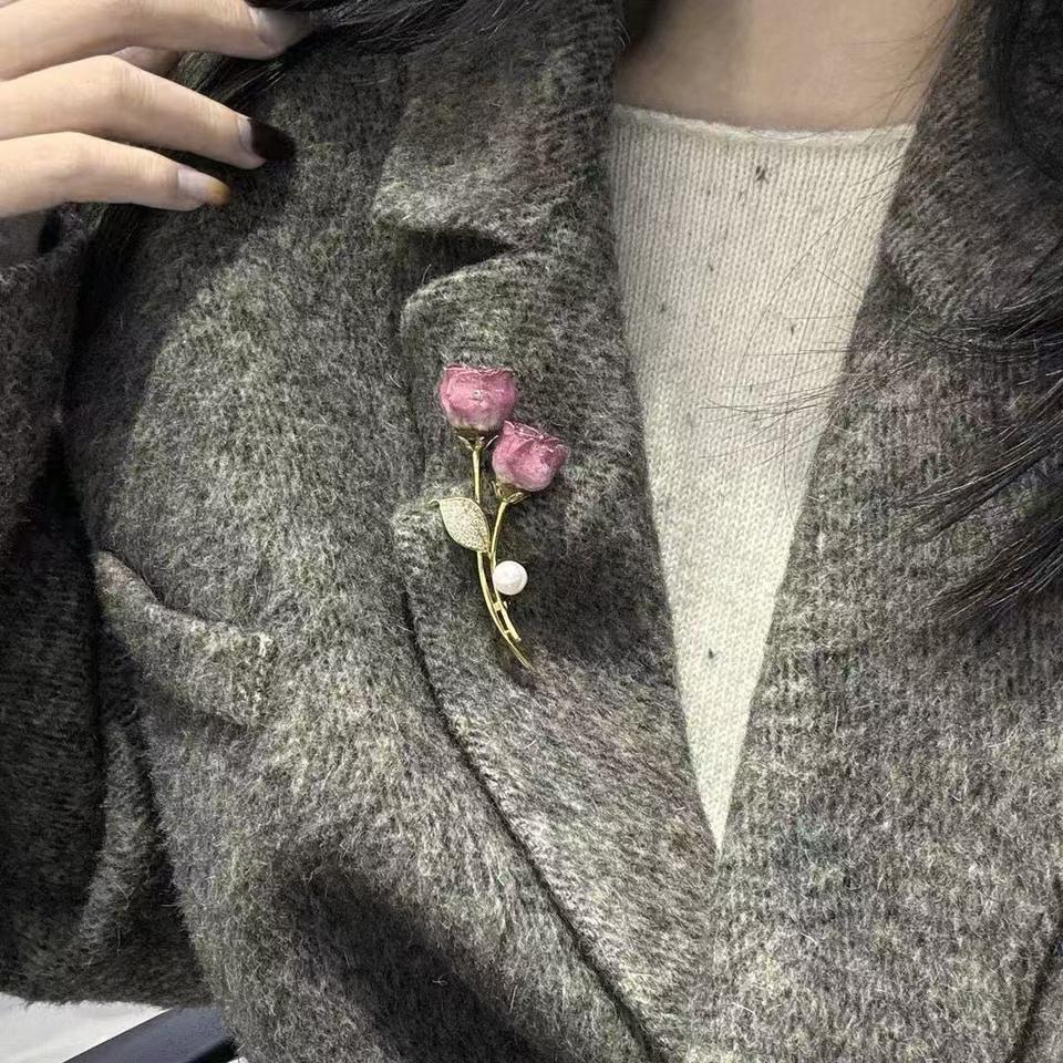 Elegant Yellow Rose Bone Flower Brooch Freshwater Retro Classic Craftsmanship Number Inlaid Chest Flower Brooch Wholesale