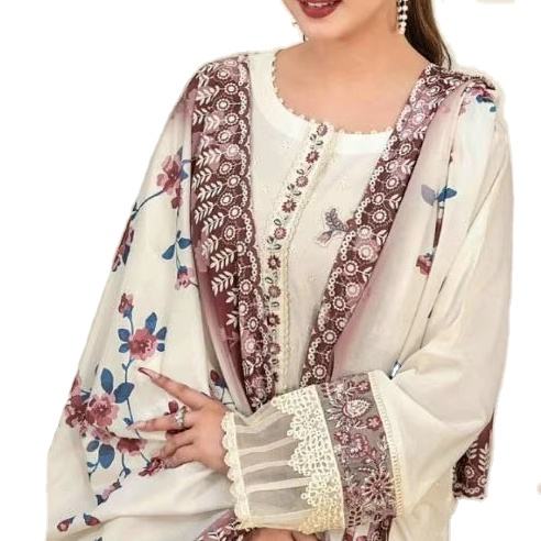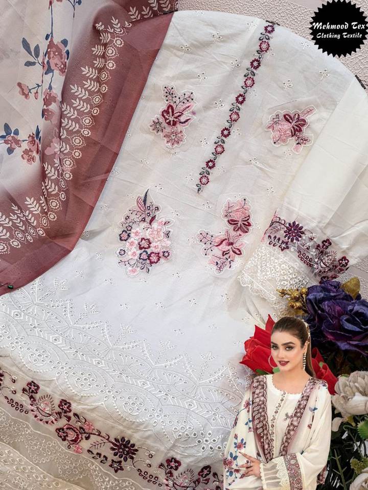 Élégant mais joli look pur coton Cambric couleur blanche broderie lourde avec Chikan Kari travail Anarkali Salwar Kameez de Surat