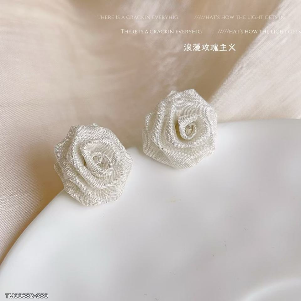 Elegant and Luxurious Silver-Toned Copper Lace Knit Rose Drop Stud Earrings Romantic Brass Jewelry for Gift