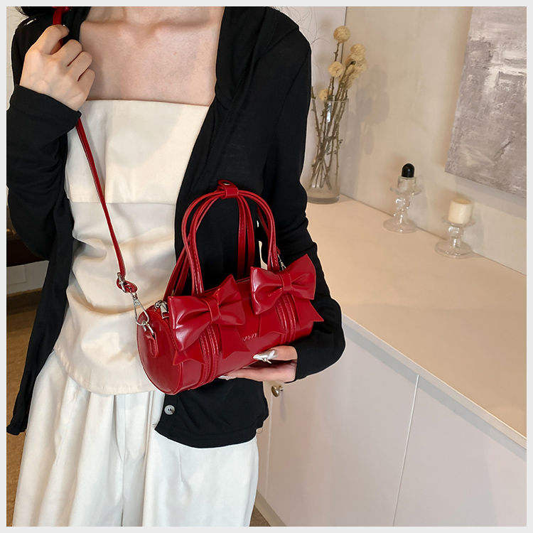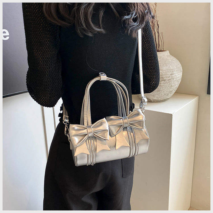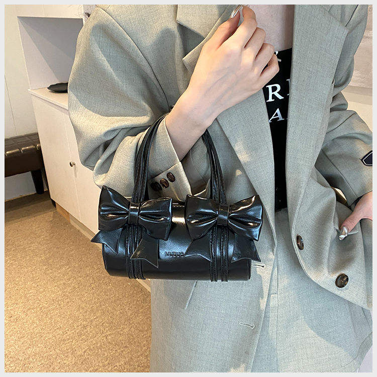 Elegant and fashionable women's handbag bucket shaped Boston bow simple new PU women's shoulder bag