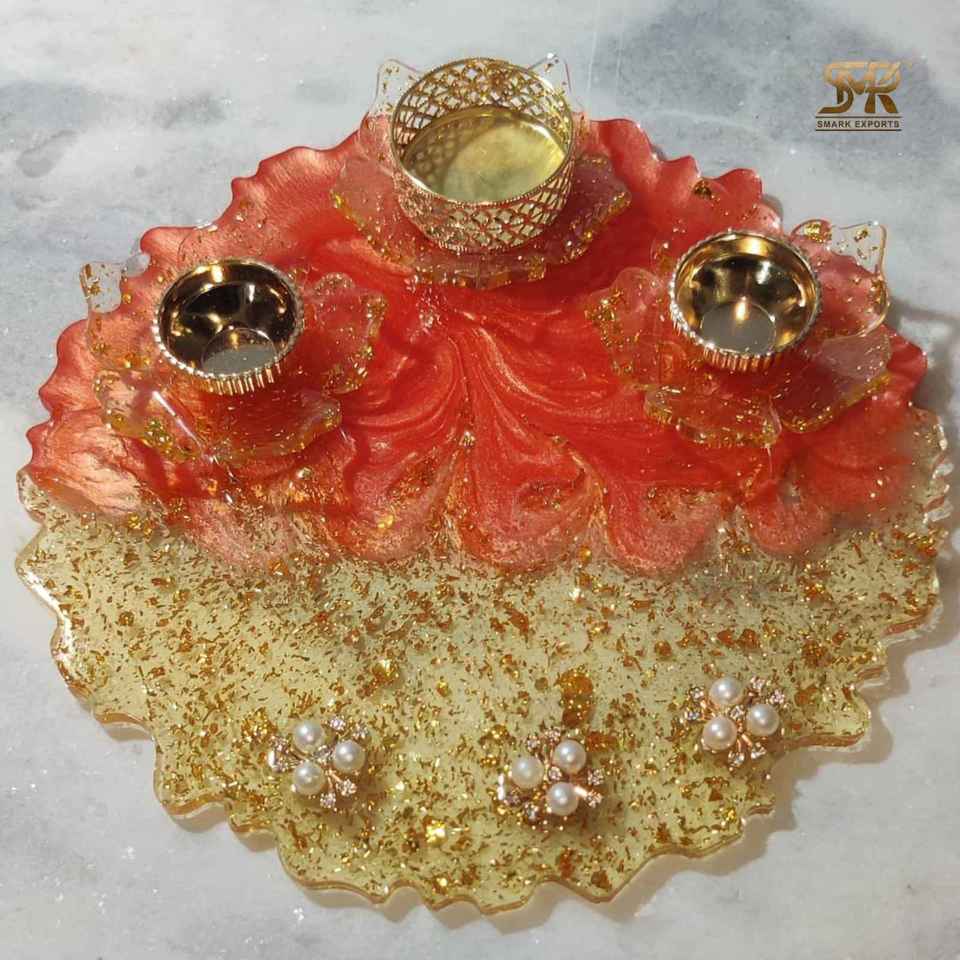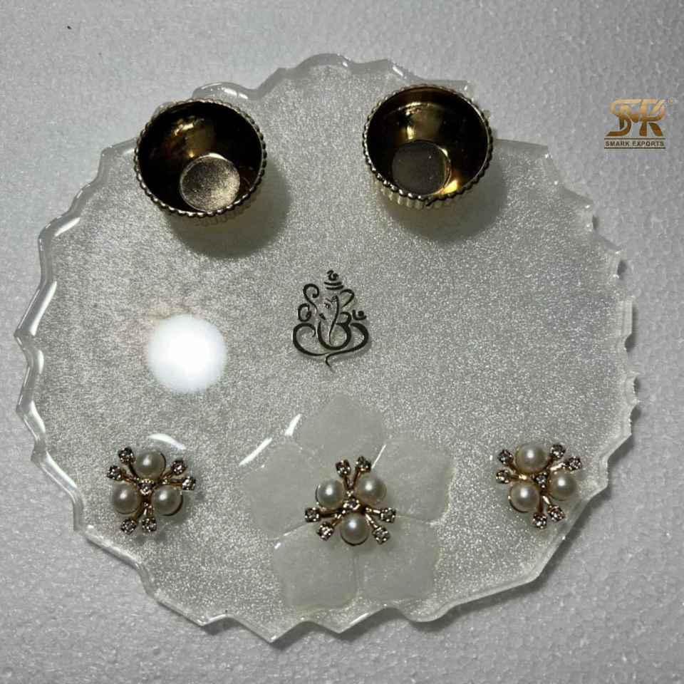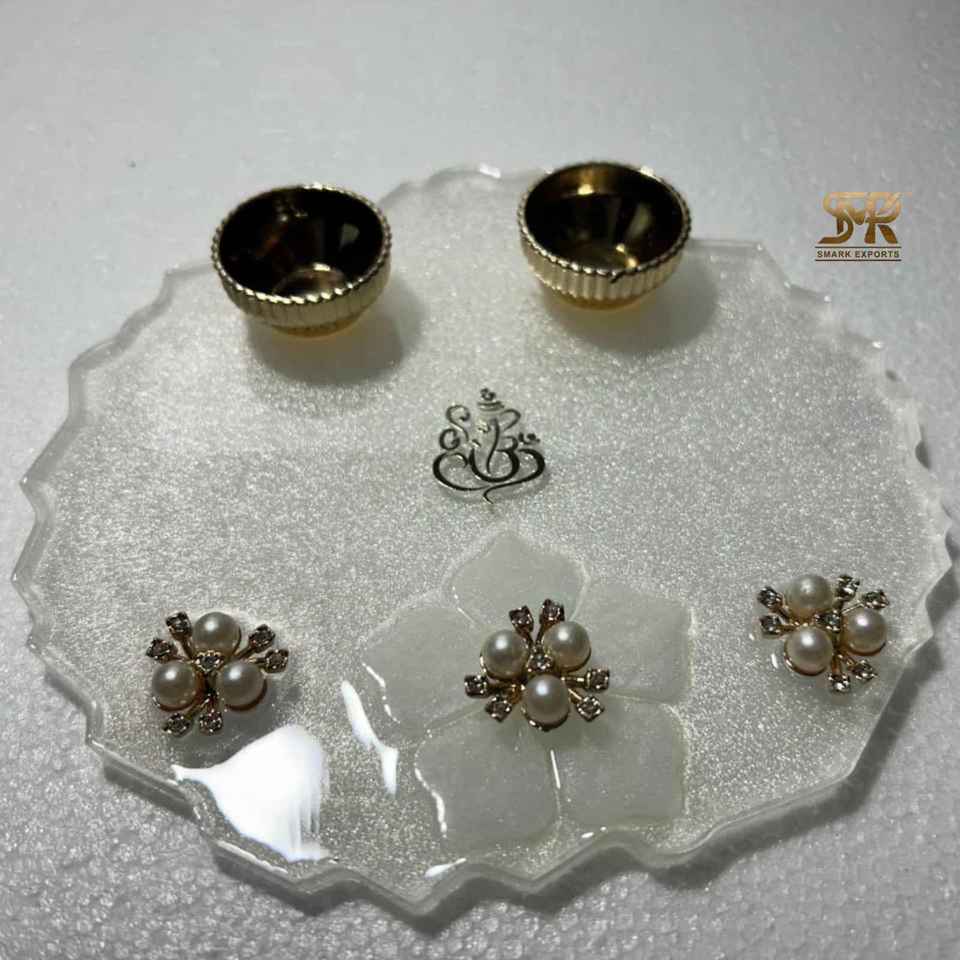Elegant Eco-Friendly Polished Epoxy Resin Angel Model Puja Thali Handcrafted Luxury Decorative Prayer Plate Diwali Festival Home