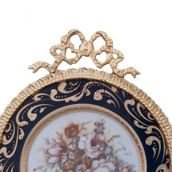 Elegant golden brass vintage decorative wall hanging round frame with floral artwork ornate black accent classic home decor