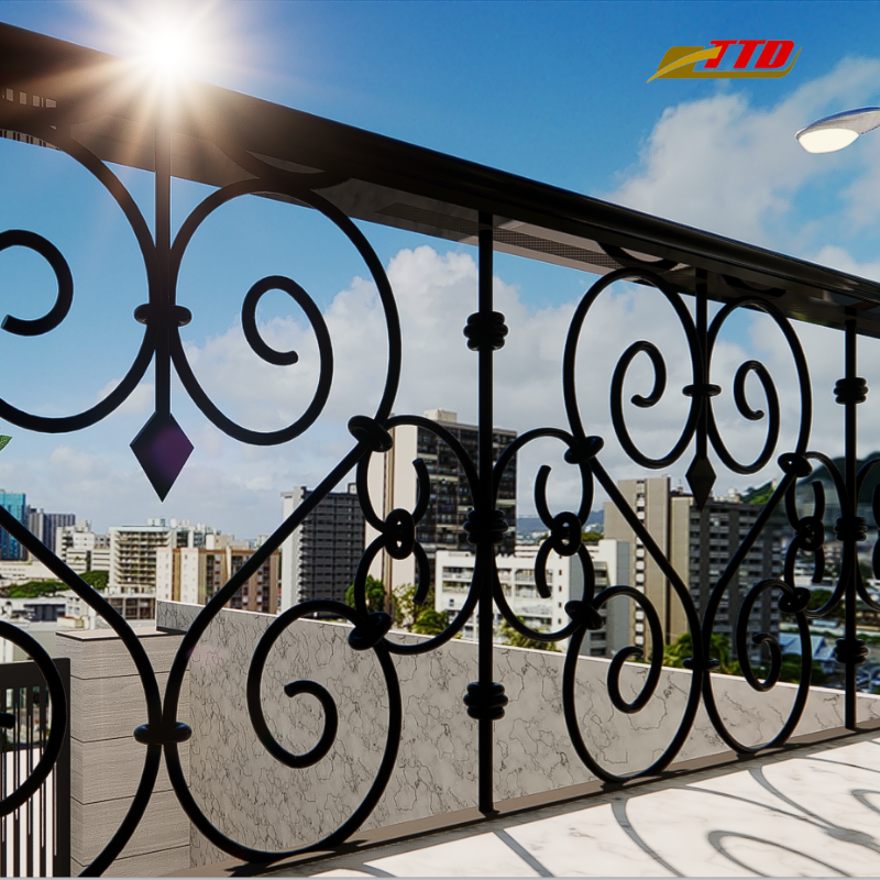 Elegant hand forged iron balcony railing with modern decorative design and outdoor powder coated durability for safety and style
