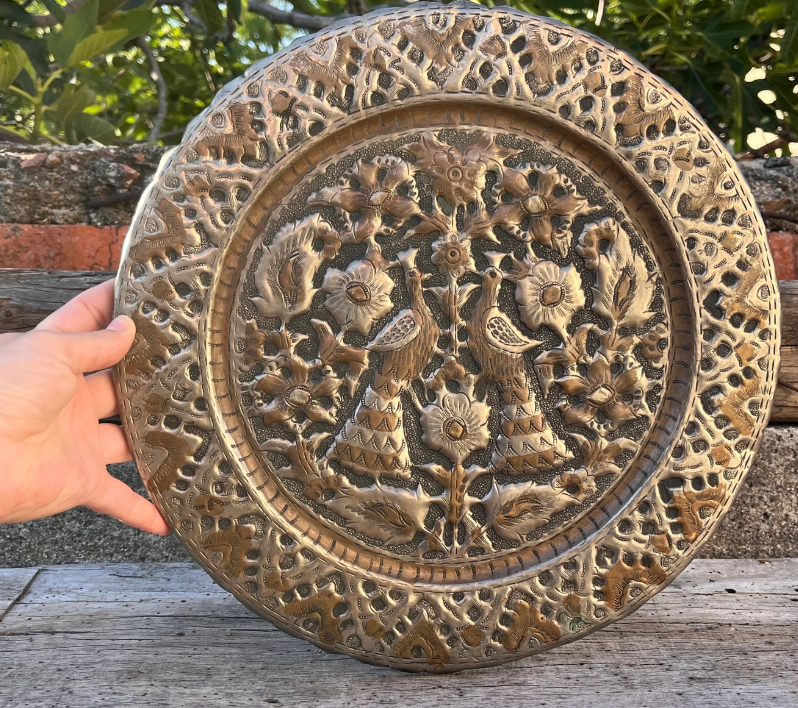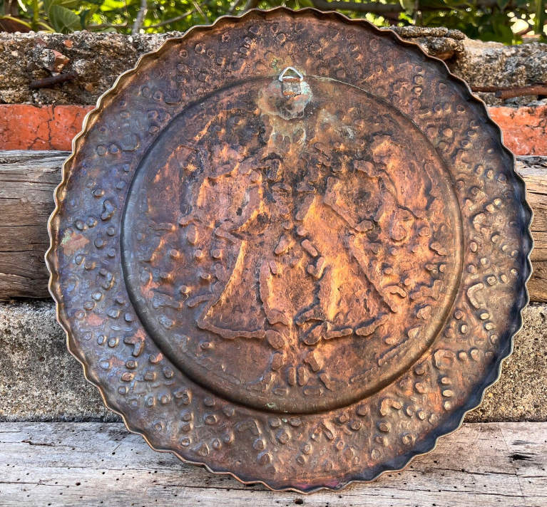 Elegant rose gold Metal Charger Plate Hammered Texture and Floral Border Design for Wedding Banquets and Dining Decor