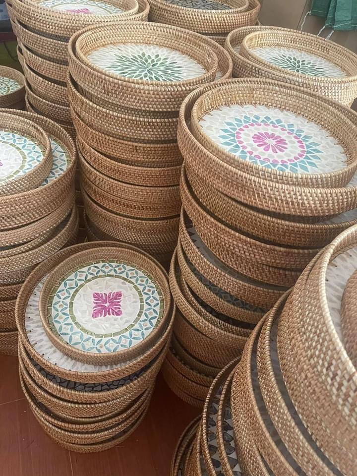 Elegant square rattan mother of pearl tray Vietnam supply for buffet food tea coffee display featuring high end craftsmanship
