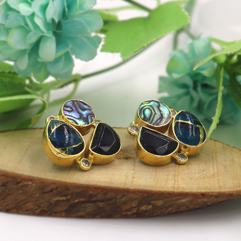 Stone Name:Mohave Apatite Copper Turquoise, Abalone Shell, Black Onyx, CZ