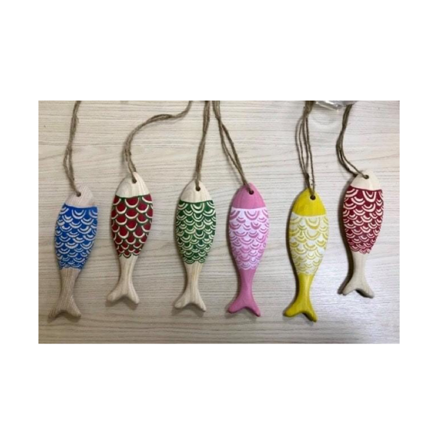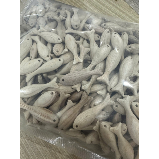 Elegant wood carved fish for room display hand shaped by artisans for rustic minimalist or traditional decor