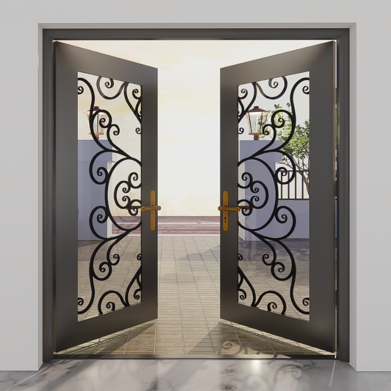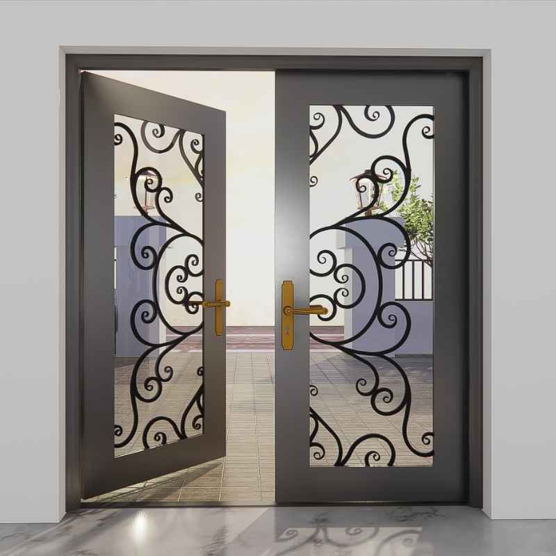 Elegant wrought iron door with custom design for luxury houses featuring secure front entry doors and accessories
