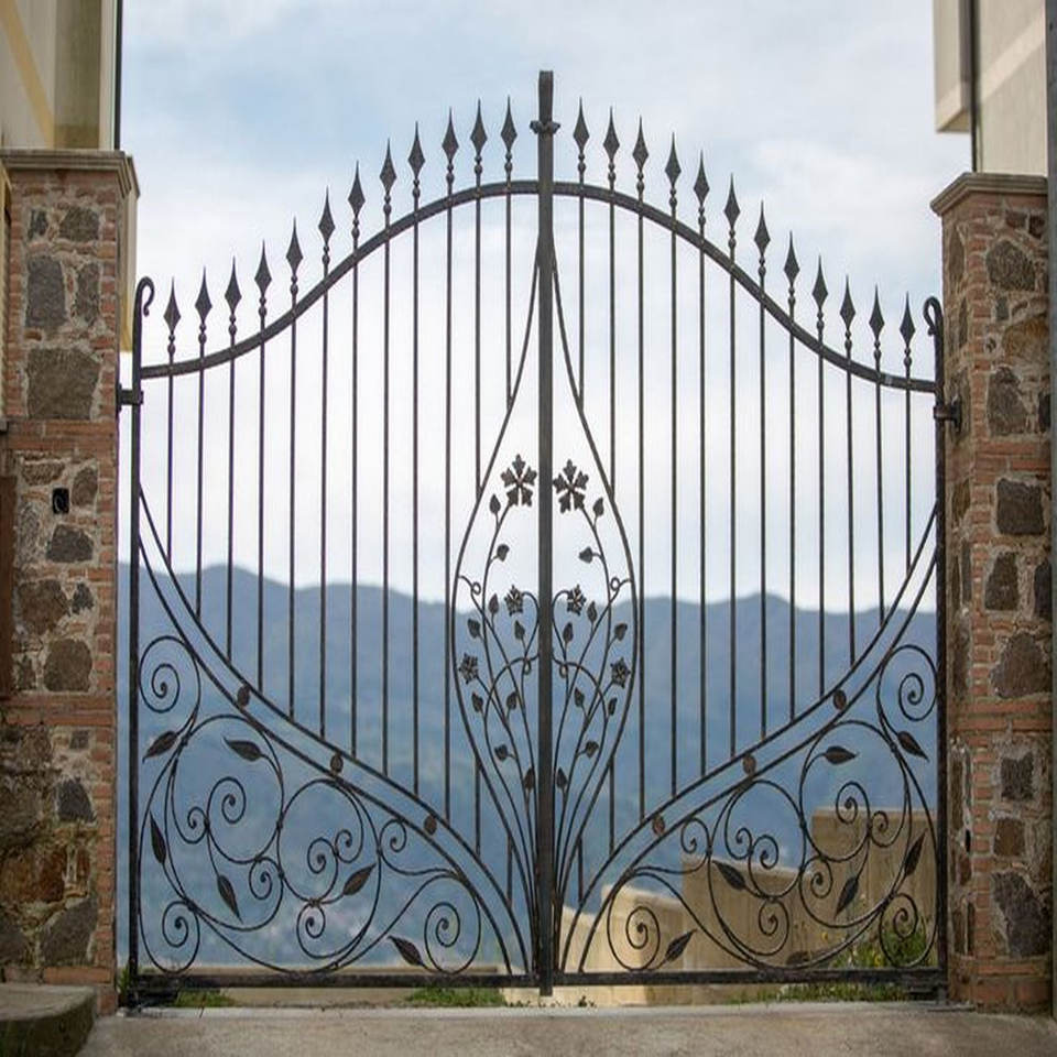 Elegant wrought iron driveway gates manufactured in Vietnam with decorative patterns and powder coated finish