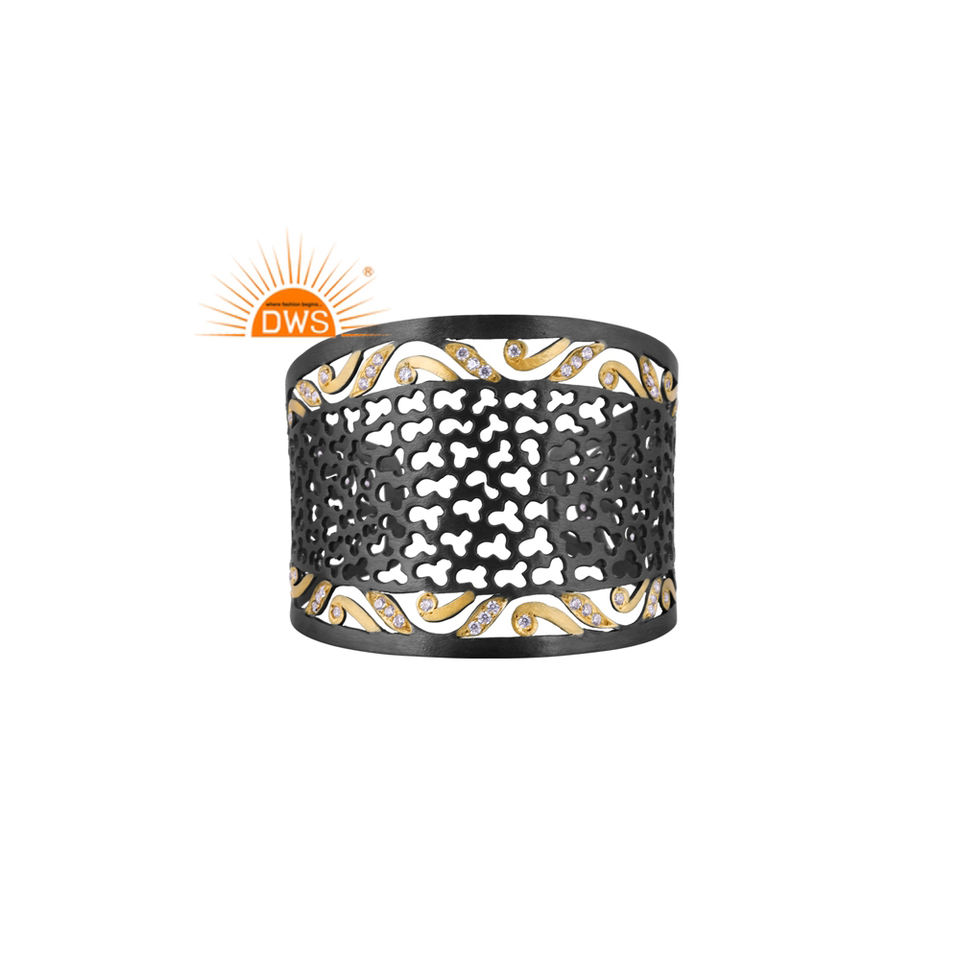 Bracelet manchette élégant en laiton plaqué or avec zircone cubique, design artisanal, fabricant de bijoux demi-fins