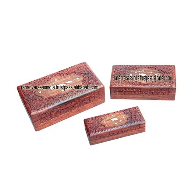 Nom du produit:Boîte à bijoux en bois avec incrustation de laiton et motif sculpté d'éléphant