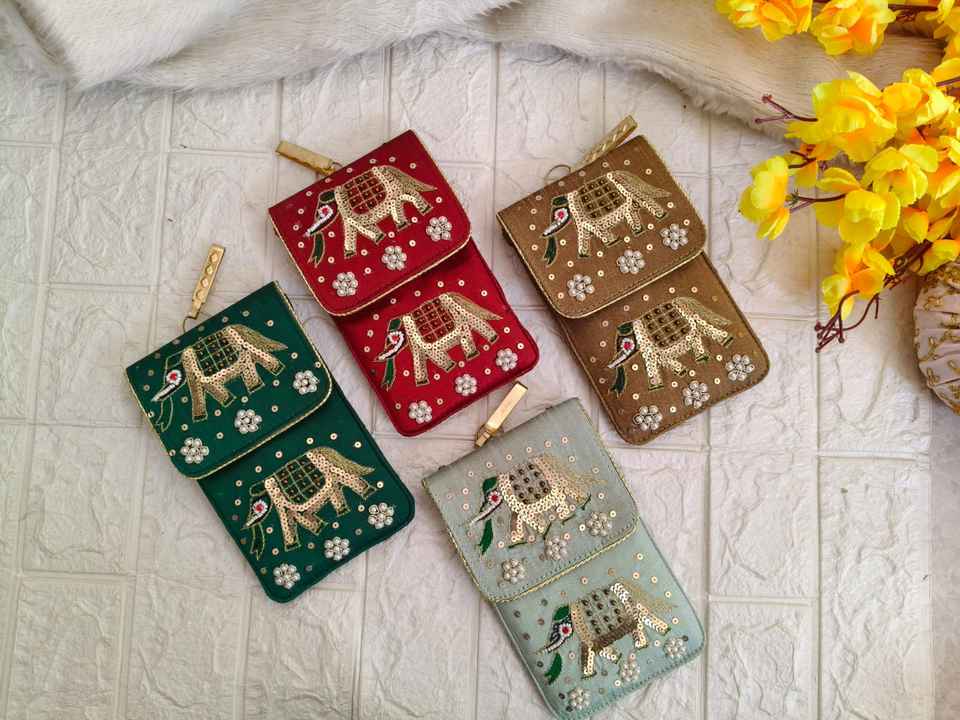 Pochette à bijoux mobile brodée d'éléphants avec chaîne à clip, cadeaux pour demoiselles d'honneur, anniversaires, faveurs de mariage, cérémonie de jaggo, cadeaux de sangeet