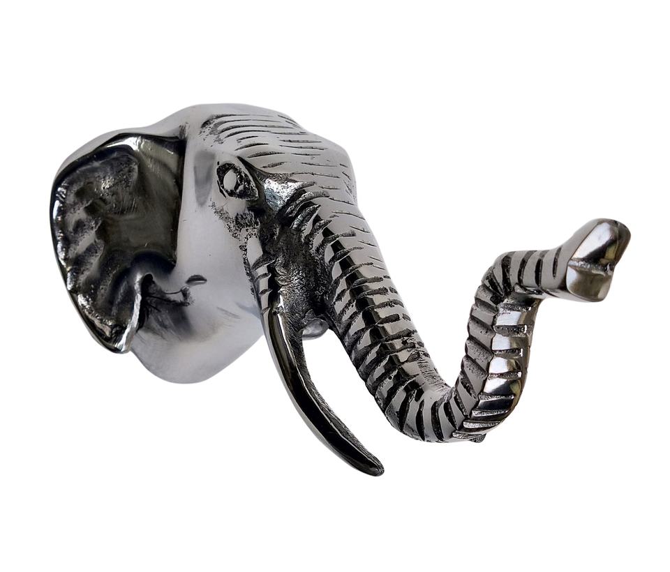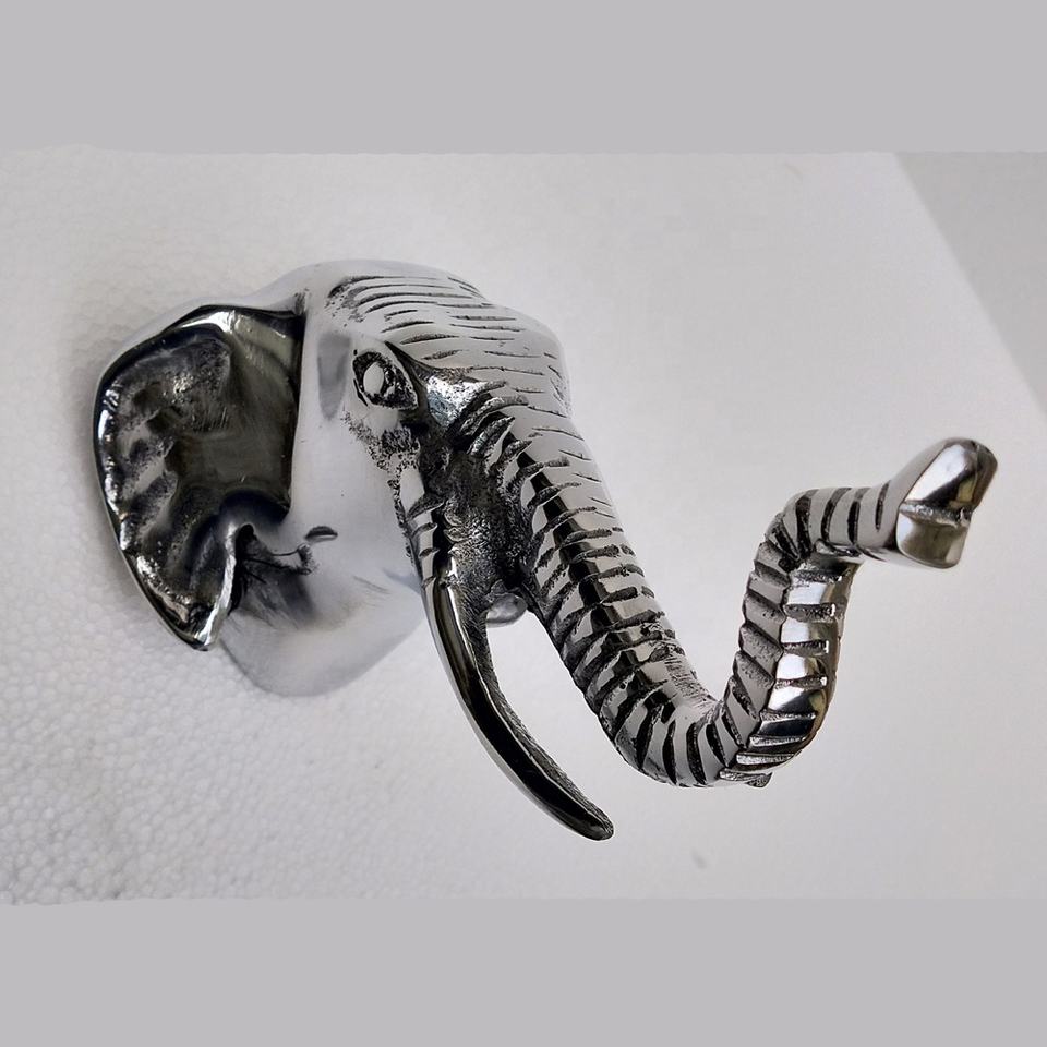 Crochet mural en aluminium poli en forme de tête d'éléphant pour la décoration de la maison