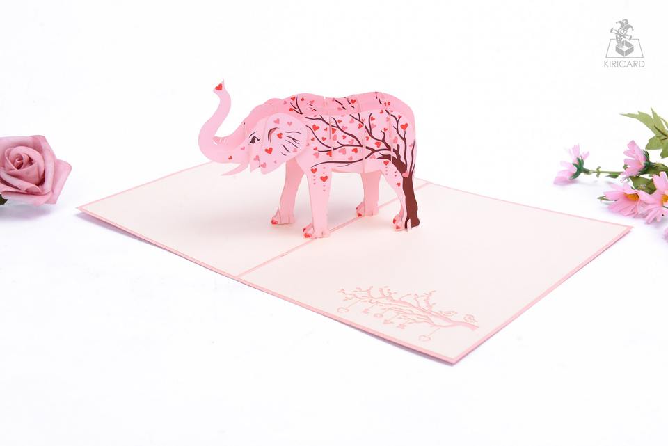 Éléphant Love Tree 3D Pop Up Card Vietnam Artisanat Vente en gros