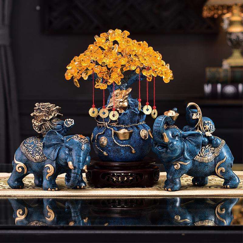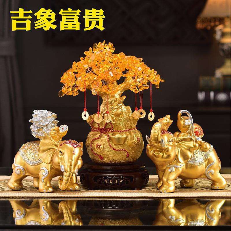 Elephant Ornament Lucky Feng Shui Artistic Sculpted Epoxy Resin Living Room Entrance TV Fortune Cash Tree Housewarming Opening