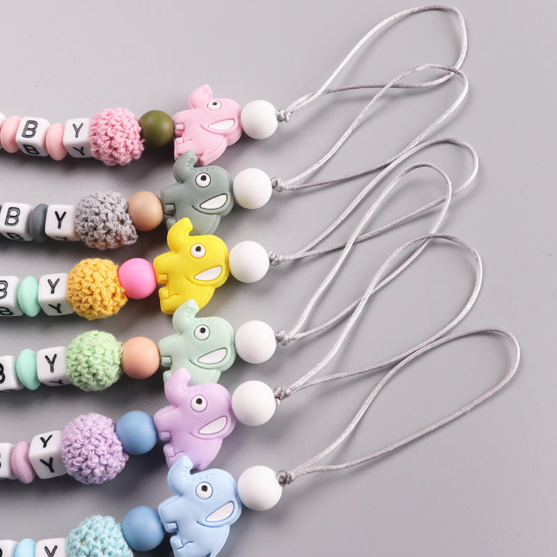Attache-sucette en silicone pour bébé de 0 à 12 mois, motif éléphant, support de dentition apaisant, jouet à mâcher, factice avec chaîne inspirée des animaux