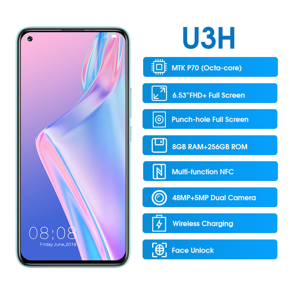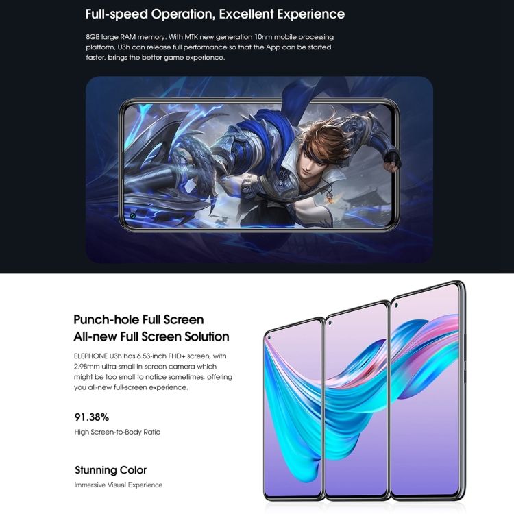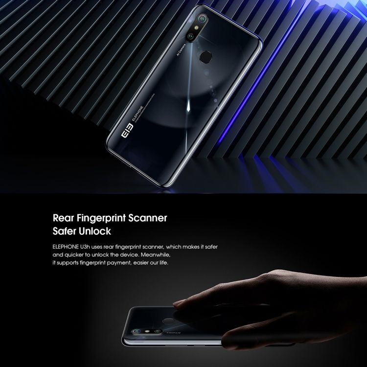 Smartphone Elephone U3H Android 10, écran 6,53 pouces, 8 Go + 256 Go, appareil photo frontal 24 MP, appareil photo principal 48 MP, charge sans fil, 4G, NFC