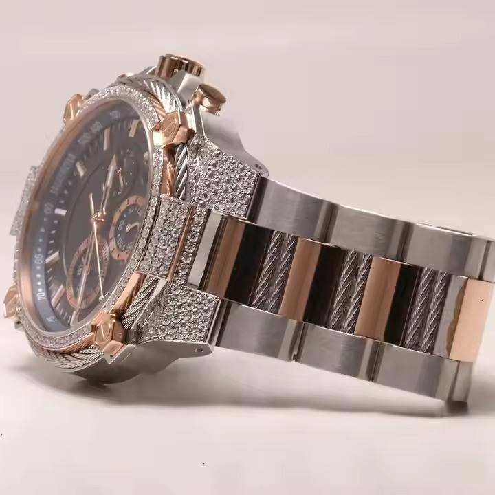 Améliorez votre style avec une montre chronographe bicolore avec de grands diamants Moissanite pour une élégance intemporelle Montre aspect or rose