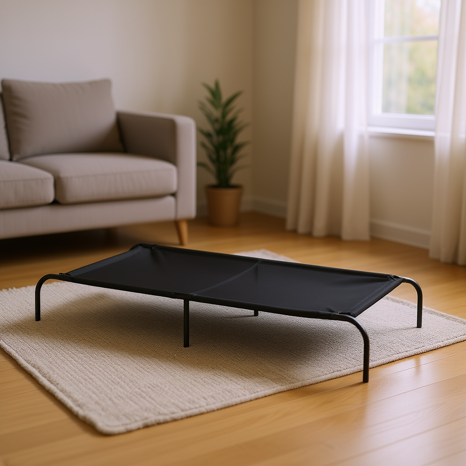 Lit surélevé pour chien en textilène, rectangulaire, pour intérieur, accessoire pour animaux de compagnie, toutes saisons, amovible et lavable