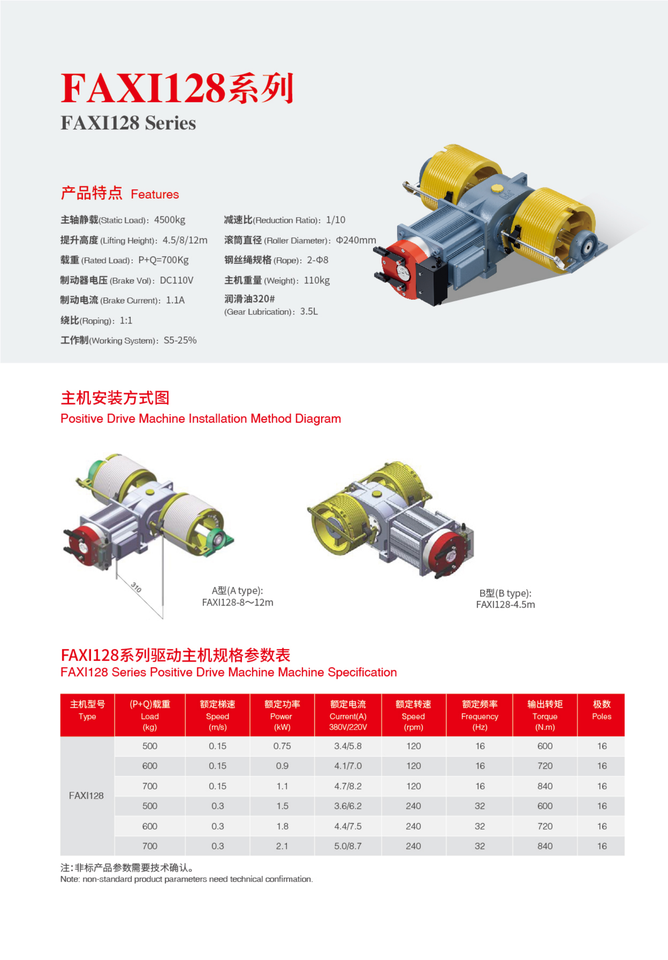 Pièces d'ascenseur Machine de traction Faxi villa FAXI28 hôte à entraînement puissant synchrone à aimant permanent, sans contrepoids