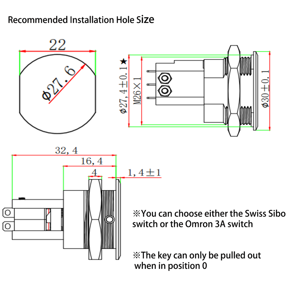 Dimension de découpe:27,6 mm