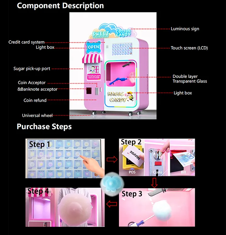 Eleven Distributeur Automatique Automatique Fabricant ODM de Fil de Barbe à Papa Distributeur Automatique pour Location et Petite Entreprise