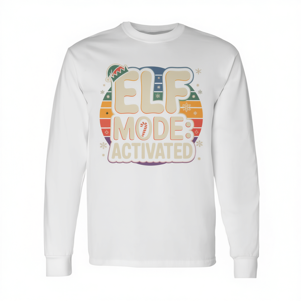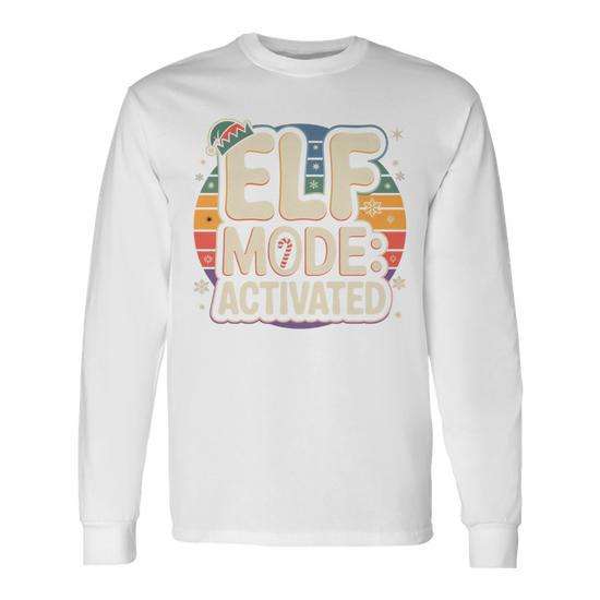 T-shirt à manches longues rétro « Mode Elfe activé » pour les fêtes, amusements familiaux hivernaux