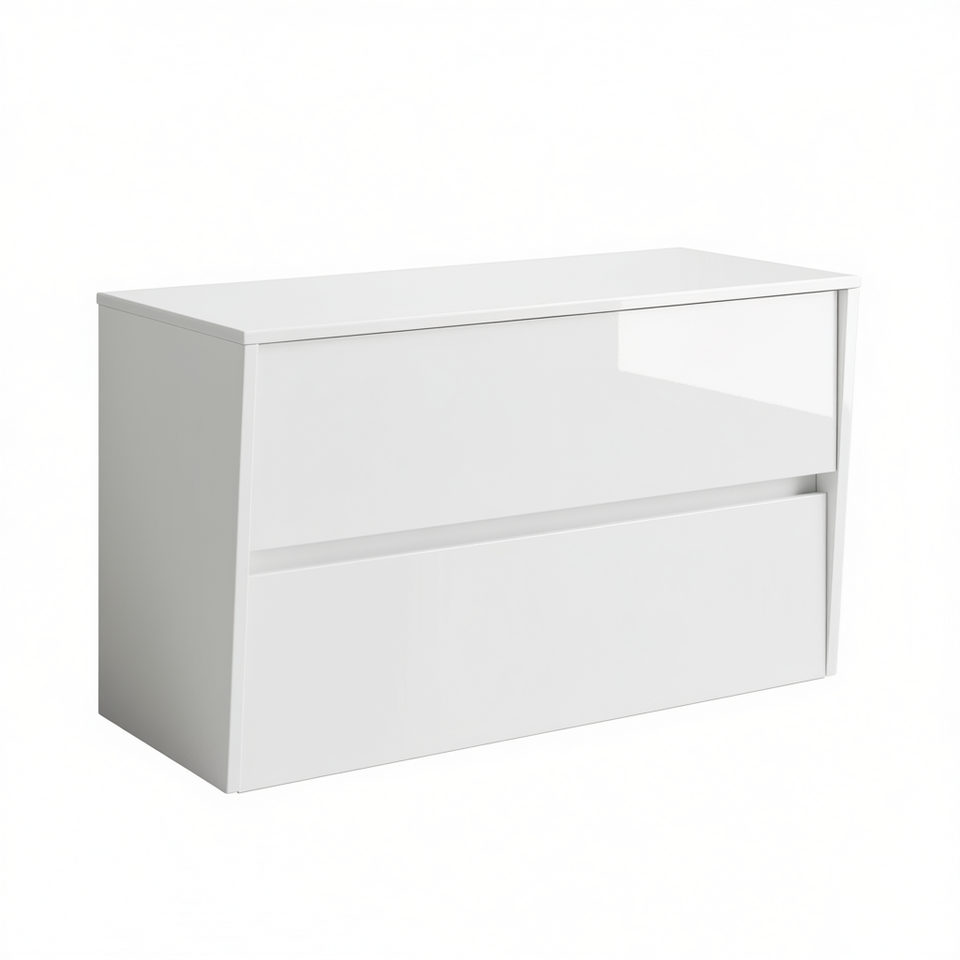 Meuble-lavabo Elisia suspendu à 2 tiroirs, 80 cm, blanc brillant