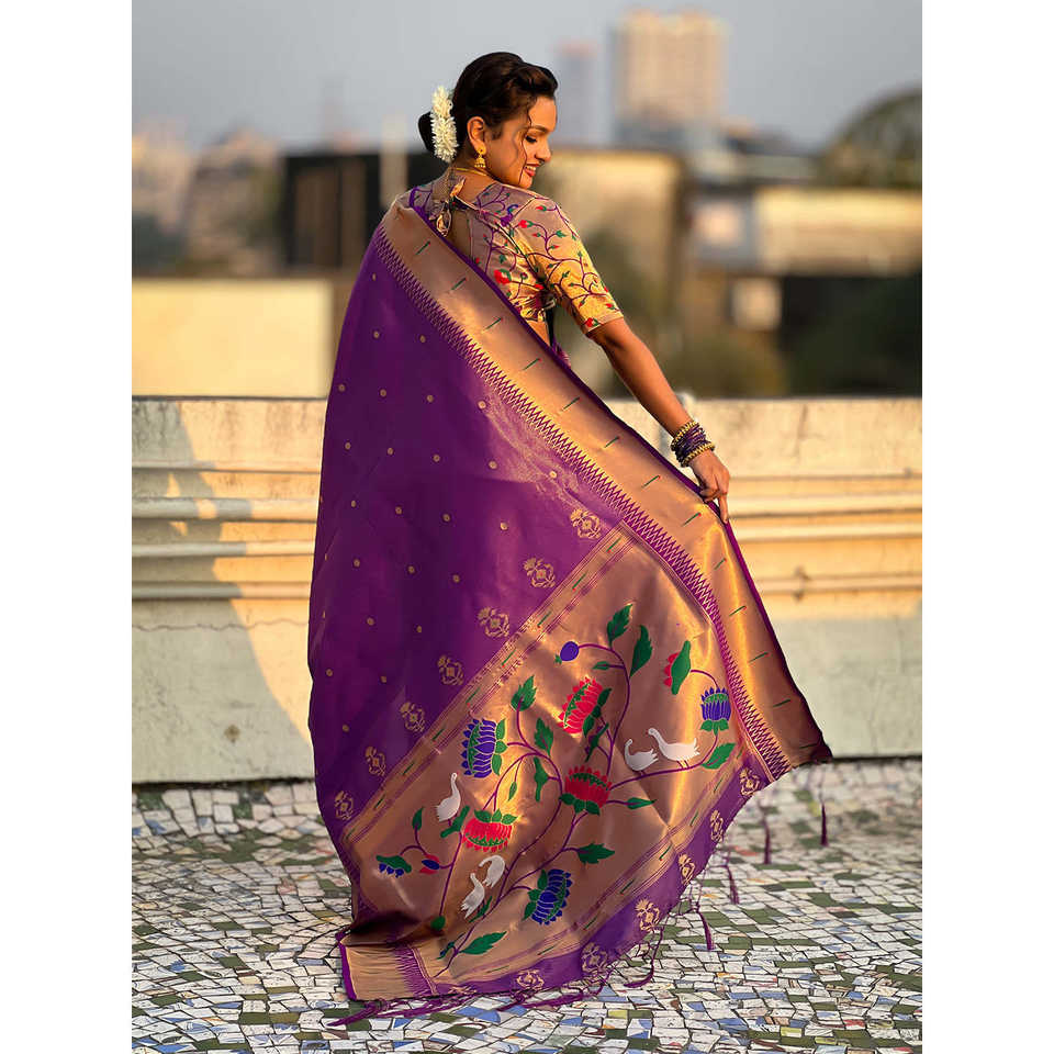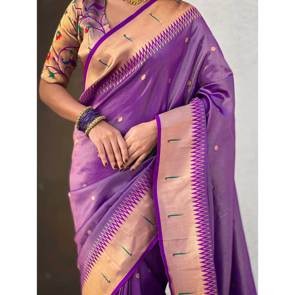 Elite Weaves Purple Tissue Paithani Zari Woven Saree 650g Elegant Prom Dresses