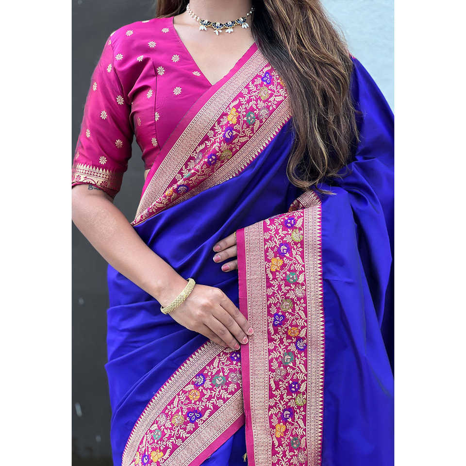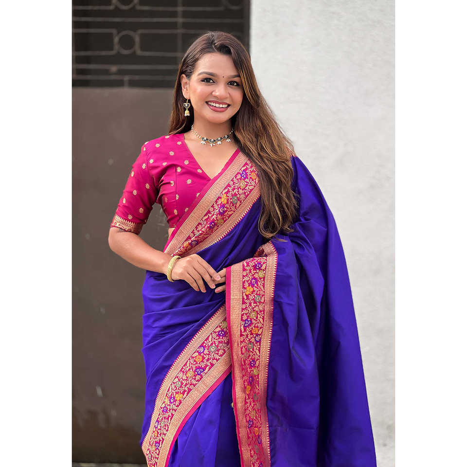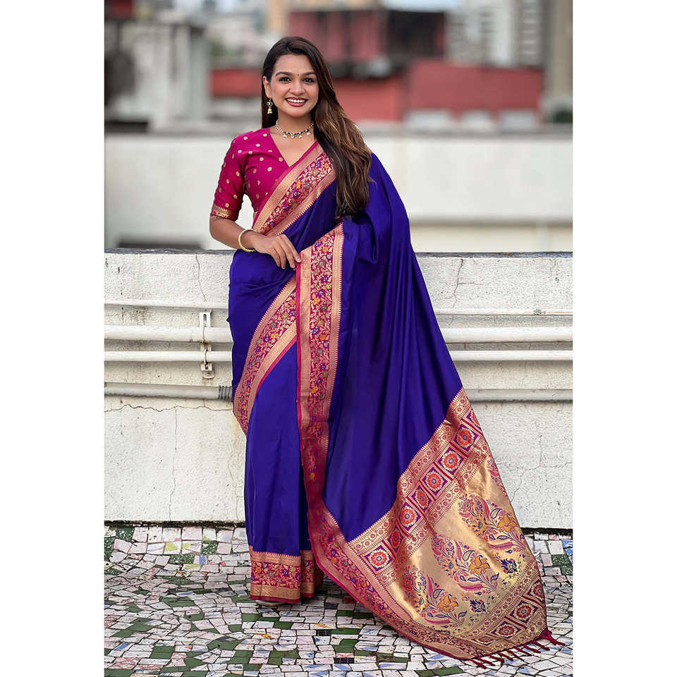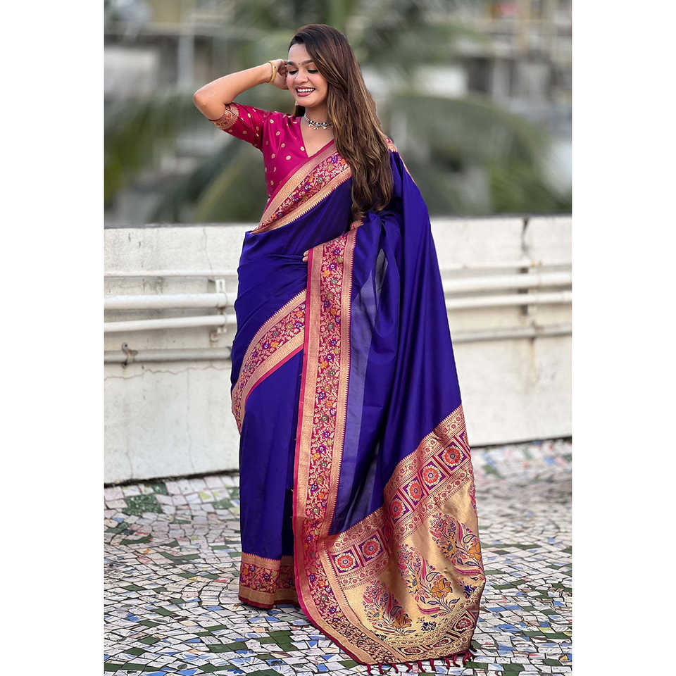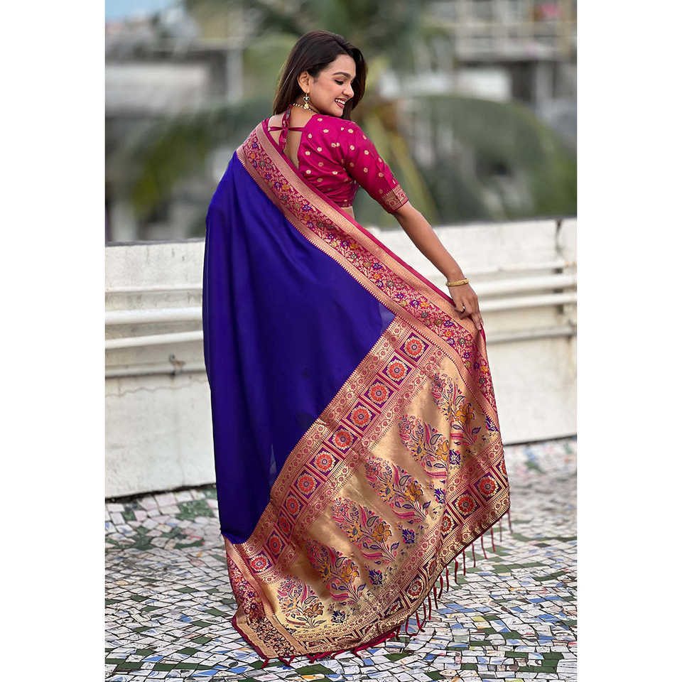 Sari en soie violette Gala Elite Weaves avec pallu Paithani, châle tissé Kadiyal Zari, vêtements élégants pour femmes indiennes