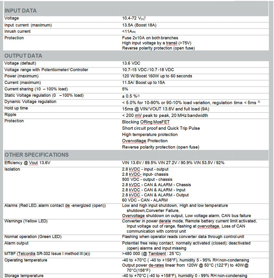 Micropack DC/DC 10-72V 12/120vNuméro de Type