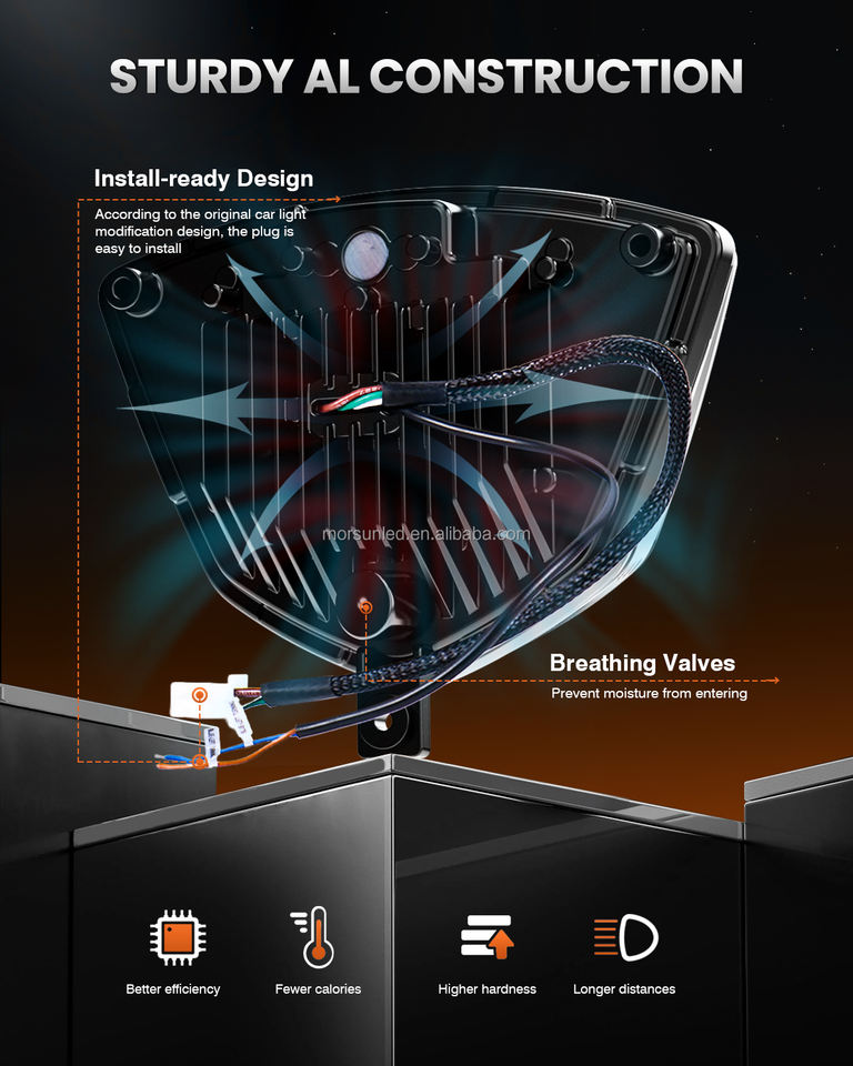 Puissance théorique:50W@Feux de route, 30W@Feux de croisement, 4,8W@Feux de position, 4,8W@Clignotants