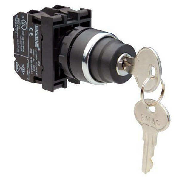Emas B102AA21 Plastique 1NO+1NC (0-I) 60° Interrupteur Rotatif à Clé avec Bouton en Position 0 de 22 mm