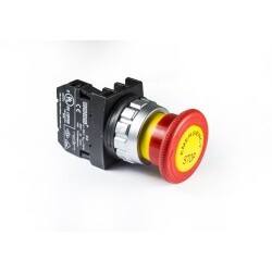 Emas H200EE Plastique 1NC Arrêt d'Urgence 40 mm Rotatif Étiqueté Rouge Bouton de 30 mm