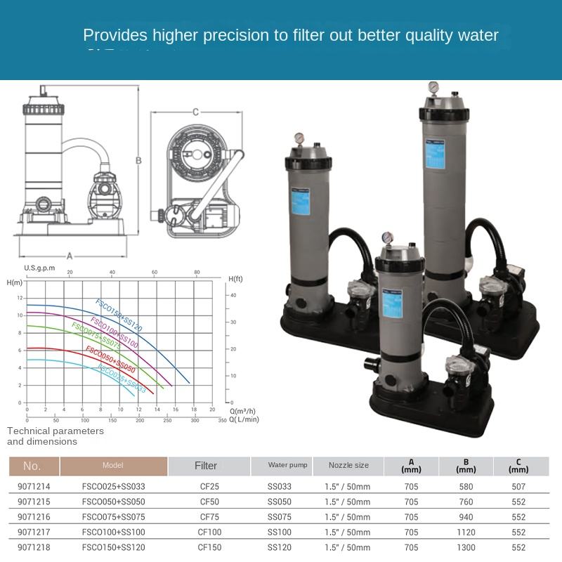 Emaux FSCO Series Filtres de piscine d'usine Réservoir de filtre à cartouche résistant aux UV avec système de filtre à cartouche de pompe