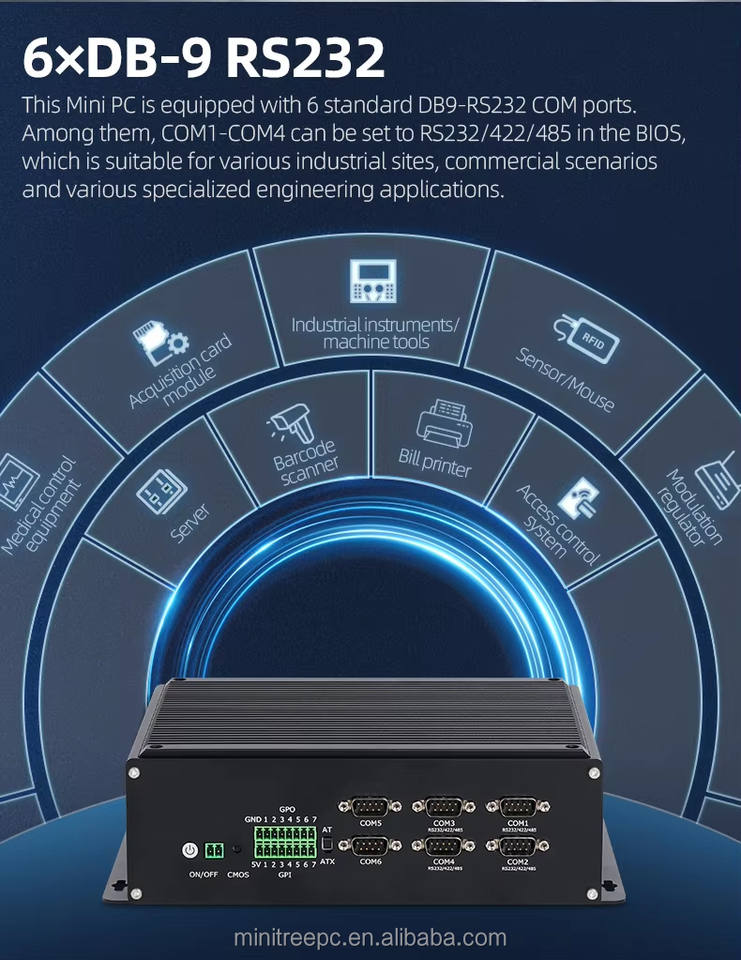 Port COM:6xDB9 COM (dont 4 prennent en charge RS485/RS422)