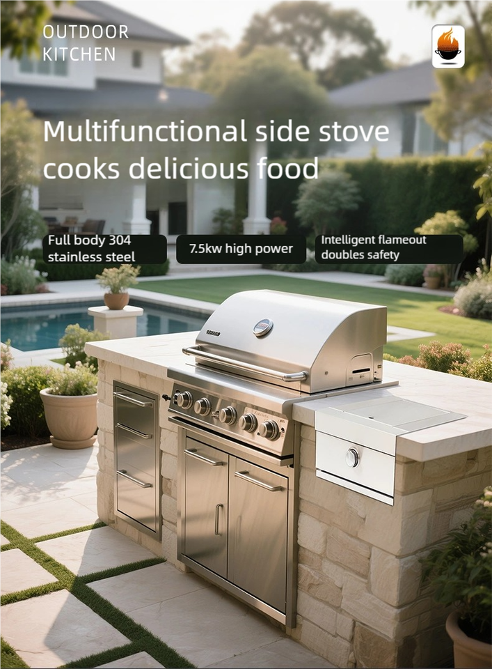 Cuisinière encastrable haute performance : Barbecue extérieur et brûleur latéral à gaz dédié pour cuisine extérieure