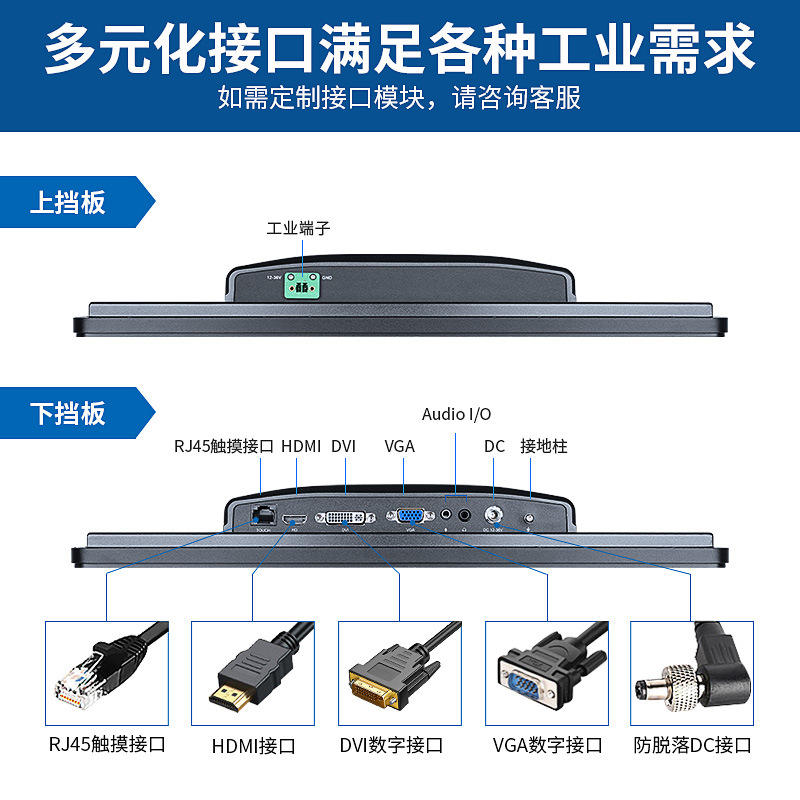Écran tactile industriel embarqué 43 pouces, résolution 1280x1024, USB, DVI, HDMI, VGA, Ethernet, usage commercial