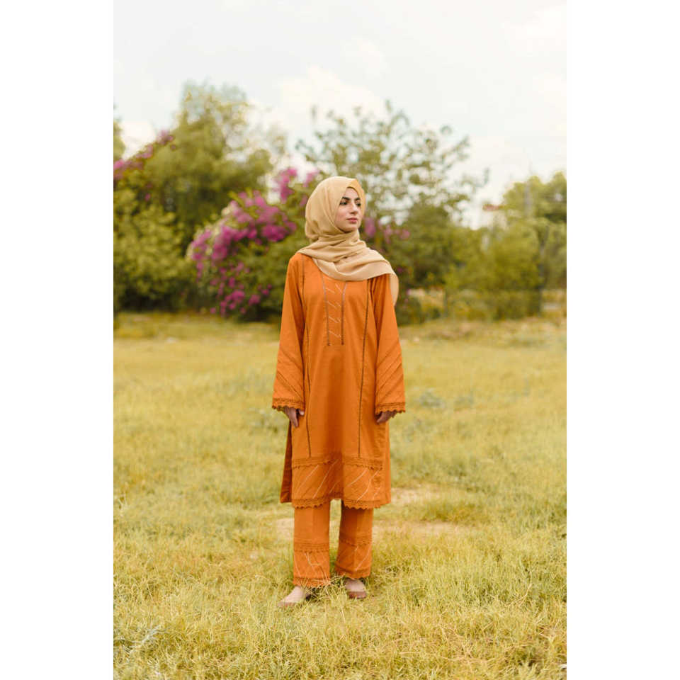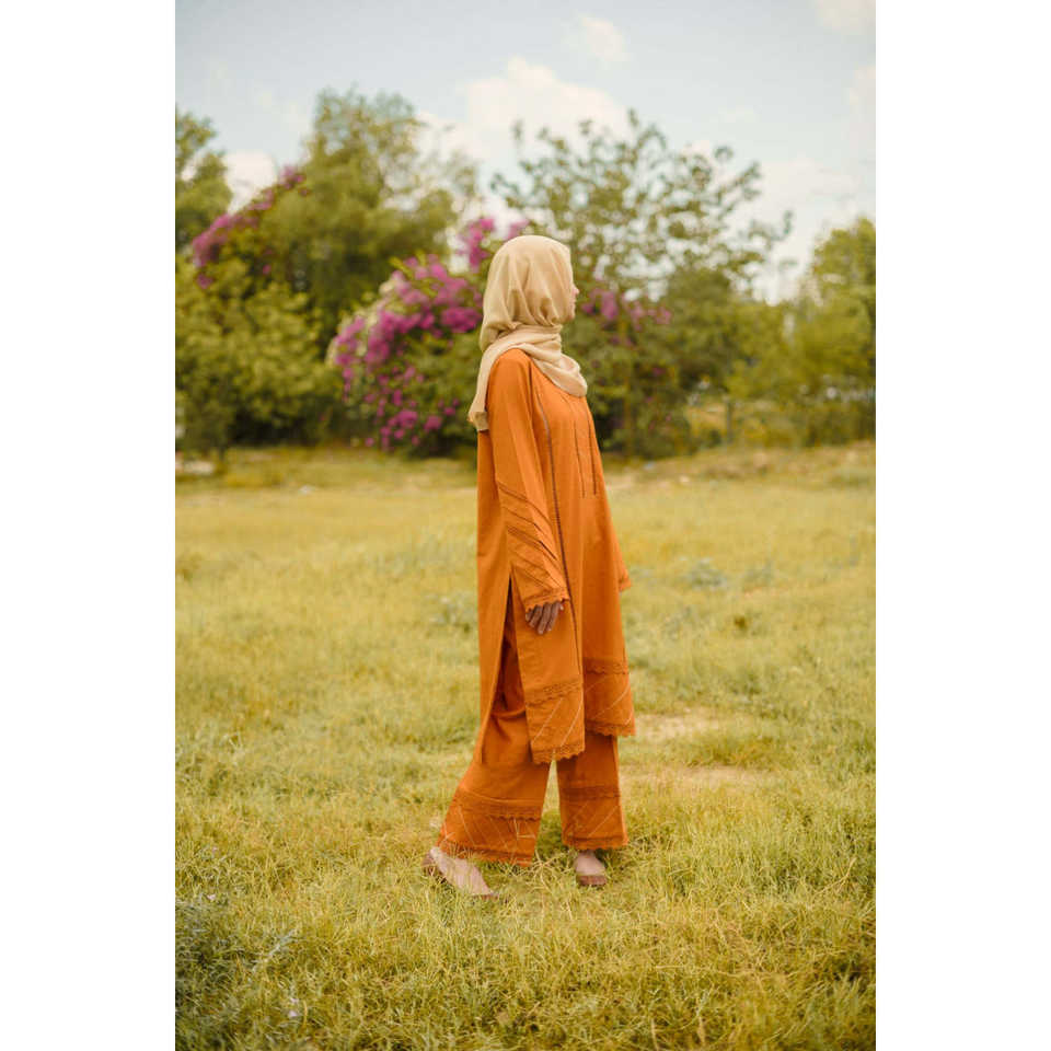 Ensemble double imprimé numérique en mousseline de soie pour femme avec dentelle et détail en dentelle